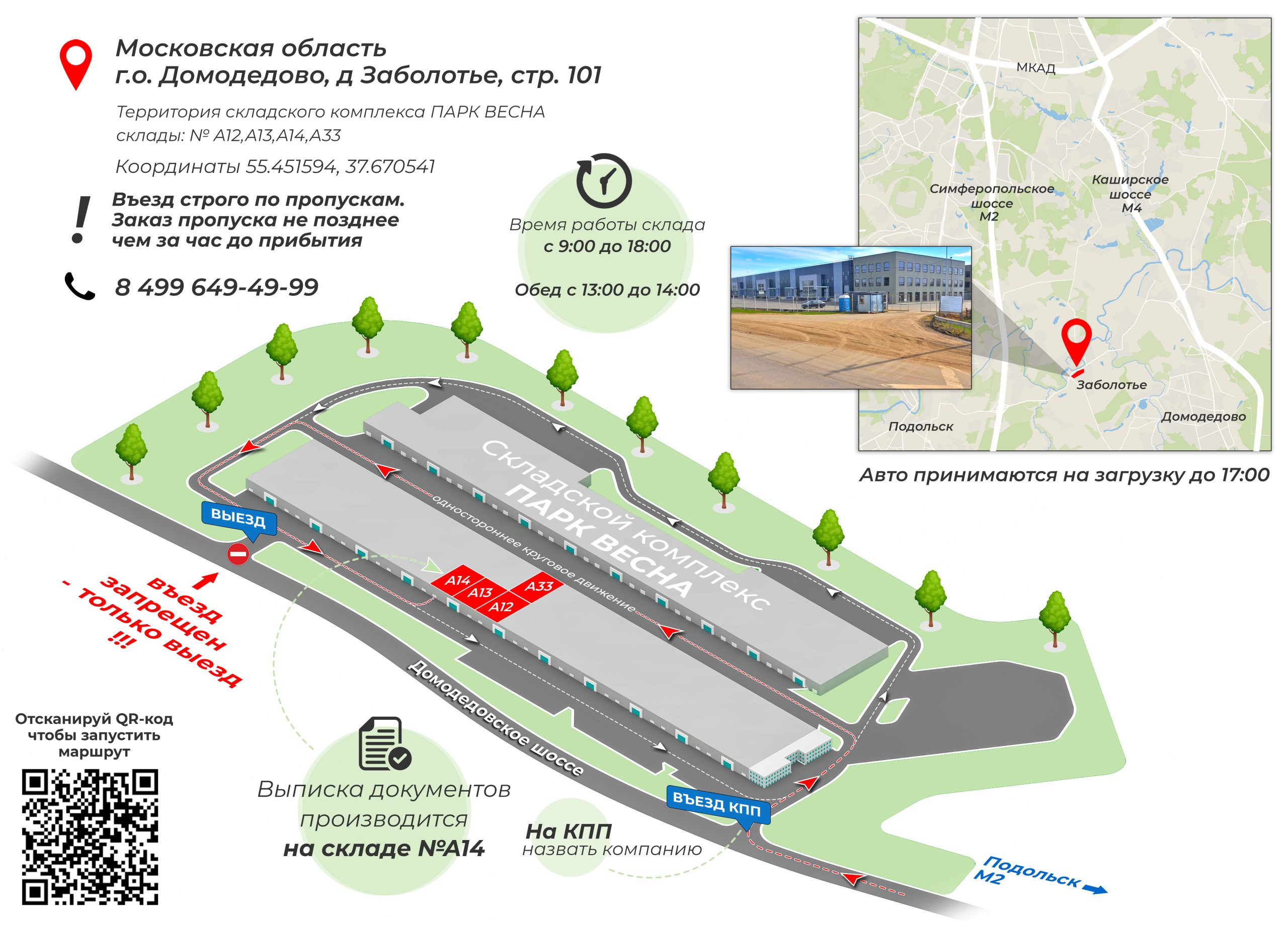 Адрес склада: М.О., г.о. Домодедово, д. Заболотье, стр.101